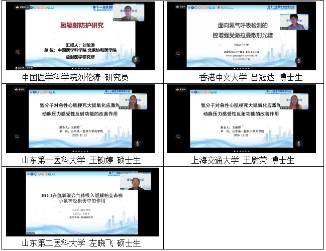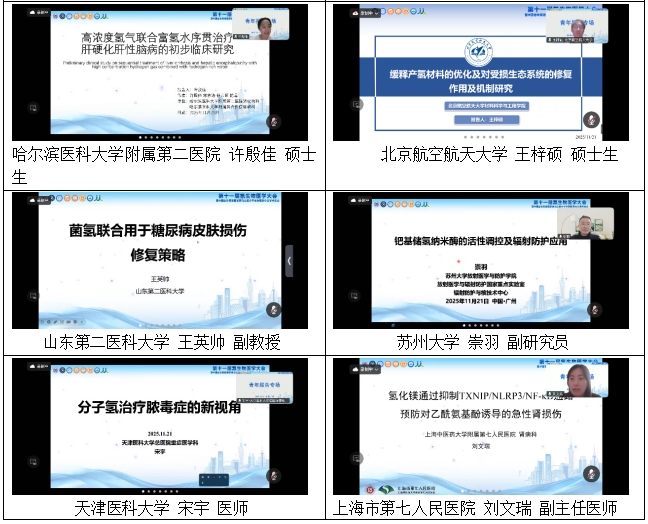 报告汇聚了来自上海交通大学、北京航空航天大学、广州医科大学附属第一医院和山东第一医科大学等11家高校及医疗机构的17位青年讲者,围绕氢气在多领域的应用与机制展开深入分享,会议持续近5个小时,充分展现了氢气生物医学领域的多元发展态势与青年学者的科研活力。